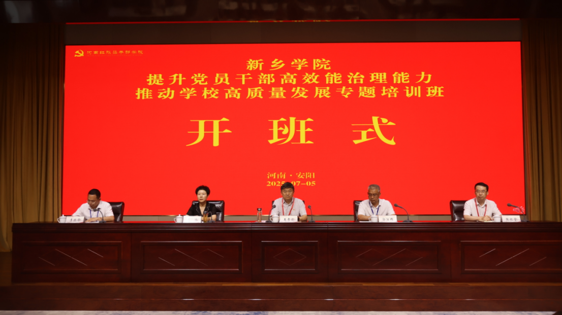 为深入学习贯彻习近平新时代中国特色社会主义思想,提升干部政治素养与能力作风,7月5日,yl23411集团官网“提升党员干部高效能治理能力 推动学校高质量发展”第一期专题培训班在红旗渠干部学院开班,参加开班仪式的有校长王孝俊,党委副书记、工会主席高炜,副校长张银堂,红旗渠干部学院党委委员、副院长郭江伟以及红旗渠干部学院优秀教师李振华。开班仪式由李振华主持。