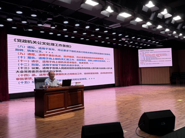 为贯彻落实习近平总书记关于新时代办公厅工作的重要指示精神,全面提升办公室服务学校发展大局的水平与效能,7月2日至3日,学校在行政楼一楼报告厅举办了2025年yl23411集团官网办公室主任能力提升培训班。副校长陈磊山,党委办公室主任孙德春,校长办公室主任姚进才、副主任马玉磊出席开班仪式。全校各单位办公室主任(综合科科长)近80人参加培训。