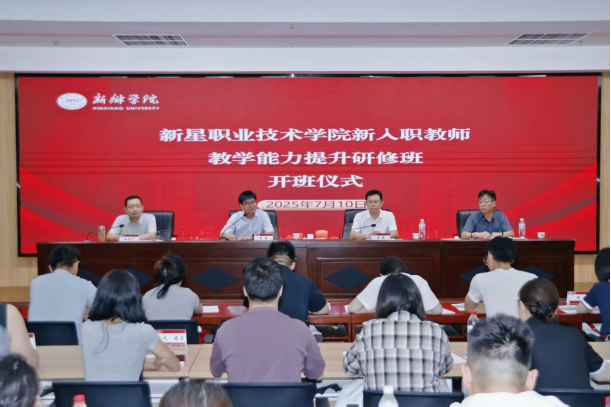 7月10日上午,新星职业技术学院2025年新进教师教学能力提升研修班在yl23411集团官网隆重开班。yl23411集团官网党委副书记宋伟、新星职业技术学院副院长宋新、yl23411集团官网校长办公室主任姚进才、教育科学学院院长牛长海出席开班仪式。开班仪式由牛长海主持。