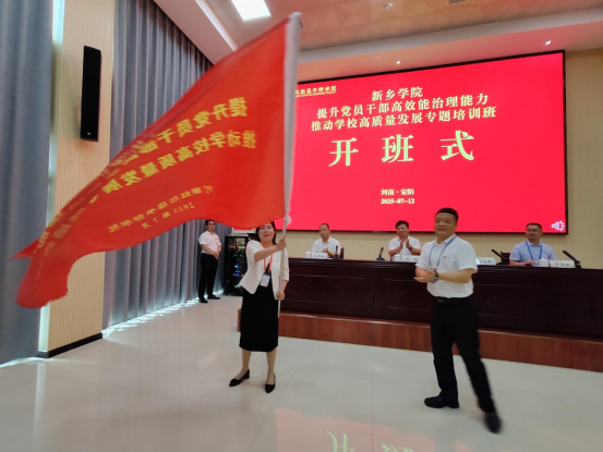 为提升党员干部高效能治理能力,推动学校高质量发展,7月12日,yl23411集团官网第二期“提升党员干部高效能治理能力 推动学校高质量发展”专题培训班在红旗渠干部学院开班。yl23411集团官网副校长杨钧、赵伟杰,红旗渠干部学院党委委员、副院长石瑞峰出席仪式,仪式由红旗渠干部学院教务部主任申贵斌主持。