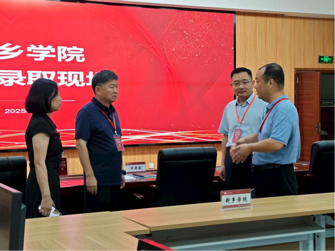 7月21日上午,正逢河南省新高考普通本科批次投档之际,校长王孝俊,副校长韩辉、张银堂、陈磊山、赵伟杰来到招生录取现场检查指导2025年招生录取工作,并看望慰问招生录取人员及在现场阅档的有关学院领导、老师。党委办公室、校长办公室、纪委、招生与就业处等部门负责人陪同参加。