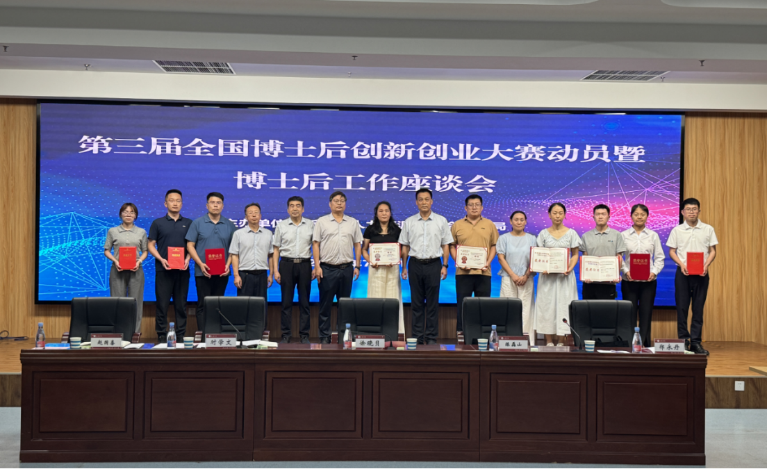会上,市人社局专技科副科长郑永丹宣读了在第二届河南省博士后创新创业大赛中获奖的单位(个人)名单,与会领导为第二届全国博士后创新创业大赛河南省预选赛中获得优秀项目的团队(个人)颁发了荣誉证书并合影留念,激励博士后设站(基地)单位博士后和博士群体积极投身即将到来的全国大赛。