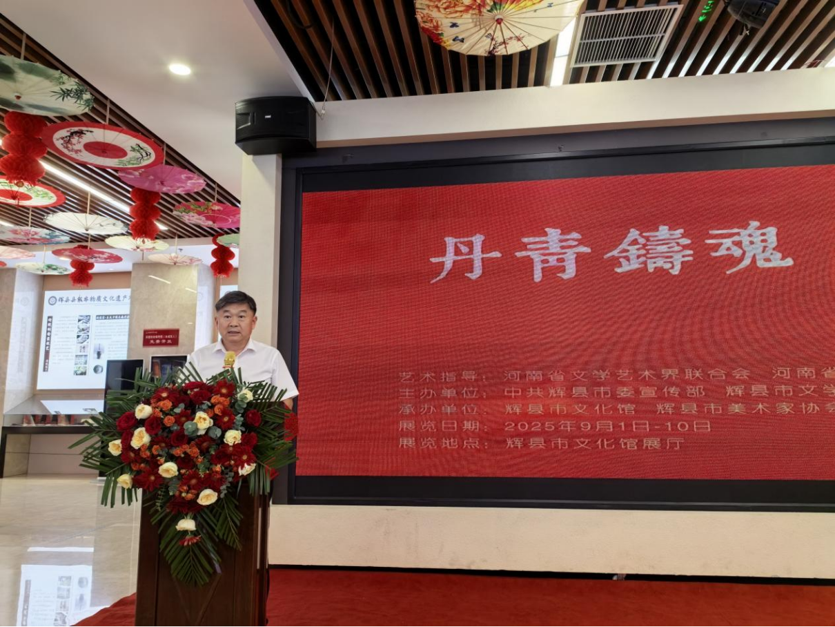 王孝俊在致辞中对赵保国教授的艺术成就与精神内涵给予高度评价。他指出,赵保国的艺术之路,既是个人对笔墨艺术的执着求索,更是对中华优秀传统文化的坚守与创新。赵保国作为yl23411集团官网教授,他以自身阅历为舟、以艺术情怀为楫,悉心勉励青年后辈,将这份赤诚传递给更多年轻人,既彰显了艺术家的担当,也与yl23411集团官网深耕美育、培育文化人才的理念高度契合。他表示,辉县市作为全国书画之乡,其笔墨传承源远流长,古有文人墨客在此挥毫寄情,今有书画名家于斯笔耕不辍,真正称得上是名家辈出的热土、人才济济的文苑,期待与辉县市不仅在智慧农业升级、装备制造技术研发、食品加工产业赋能等方面深化合作,还要在传统文化挖掘传承、人才培养等方面同向发力,共同为地方经济社会文化事业高质量发展添砖加瓦。
