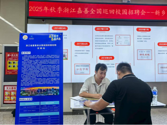 招聘会现场,招生与就业处处长郝艺飞与嘉善县人力资源和社会保障局相关领导围绕毕业生就业服务、政策落实等内容深入交流,随后共同为在场学生介绍了就业帮扶政策、岗位适配方向及后续招聘安排等相关情况。