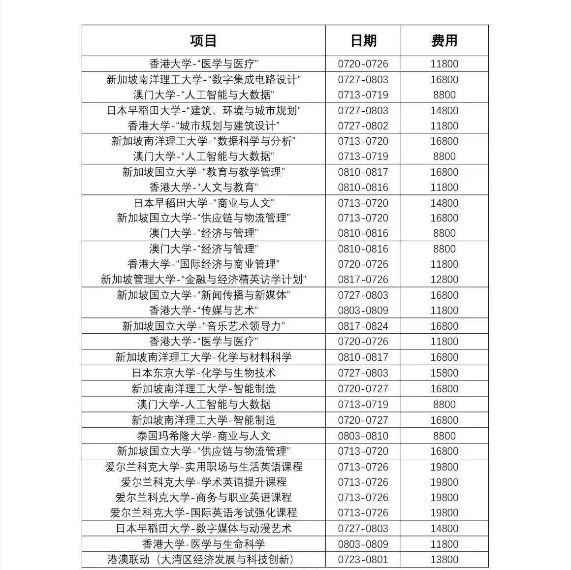 注:以上费用均包含课程费、住宿费、参访交流费、境外大巴交通费、保险费;均不包含证件签证办理费、国境(外)旅费(机票或高铁票)、自由活动和往返日餐食费及其他个人消费。