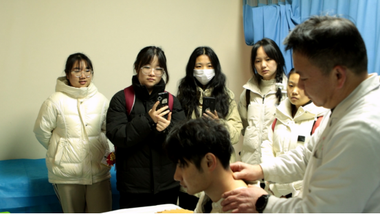 最后,在按摩推拿环节,彭玉林大夫针对同学们长期伏案学习导致的颈肩疲劳等问题,进行了现场治疗。他手法独特,刚柔并济,在舒缓肌肉紧张的同时,还向同学们讲解了中医按摩推拿在预防和治疗疾病方面的作用机制。同学们纷纷表示,经过彭玉林大夫的按摩推拿,身体的疲劳感得到了极大缓解,同时也对中医的诊断和治疗方法有了更直观、更深刻的认识。