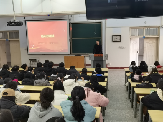 为进一步宣传国家征兵政策,激发学院适龄青年大学生投身军营、报效祖国的热情,12月10日下午,管理学院开展国防教育暨2024年下半年大学生征兵政策宣讲活动。经广泛动员宣传,学院2025届毕业生共计150人参与活动。活动由学院征兵专管员朱修平老师主持。