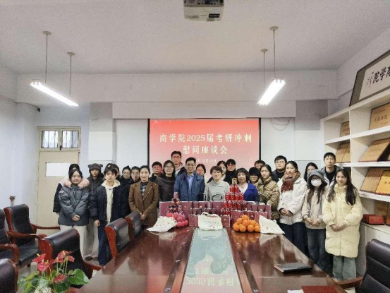 为鼓舞学生考研信心、提升考生备考士气,传递学院温暖关怀,12月12日下午,商学院在A03-504会议室举办2025届毕业生考研慰问暨考前指导座谈会。学院党委书记周珍、副院长周斌和李晓红、毕业班辅导员以及2025届考研学生代表参加此次座谈会。