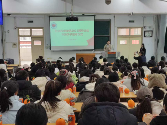 为帮助考研学子缓解备考压力,增强考研的信心与斗志,鼓励同学们在考研的最后阶段做好充分准备,教育科学学院于12月17日下午在A11-226召开2025届毕业生考研学子送考仪式。学院党委副书记李彦、全体辅导员和近200名考生共同参加了仪式。