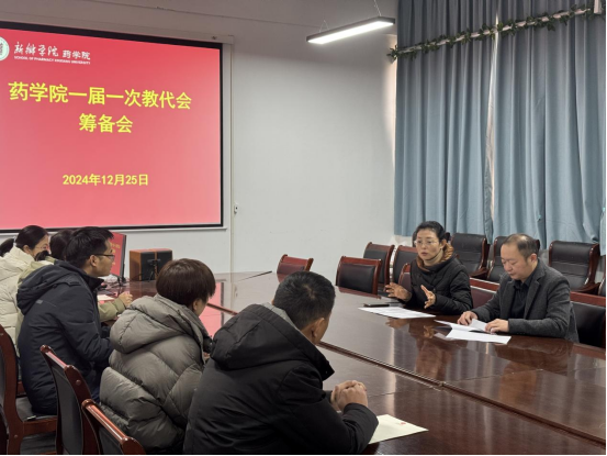为深入贯彻落实党的二十届三中全会精神、2024年全国教育大会精神,进一步加强药学院民主建设,开好药学院一届一次“教代会”,12月25日上午,“教代会”筹备工作部署会在药学院会议室召开。会议由党委书记骆云飞主持,党委副书记、分工会主席韩爱慧,分工会委员及“教代会”筹备小组全体人员参加会议。