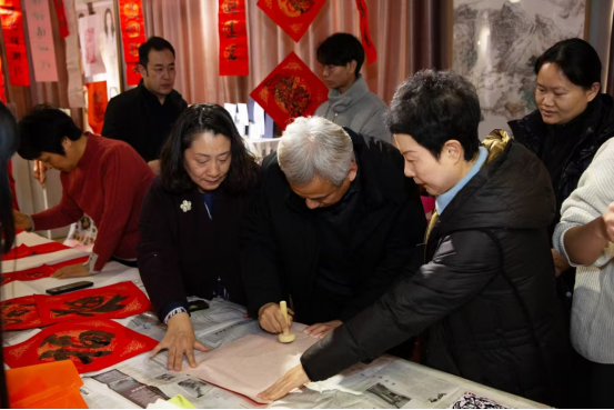 12月31日下午,在新年的钟声即将敲响之际,美术学院分工会举办了“挥毫书春意,剪印绘年俗”活动,分工会围绕传统民俗,以印门神、题福字、写春联、剪窗花的多彩形式营造出浓厚的新年氛围,提升分工会教职工的幸福感和归属感。新乡市政协副主席李军,校党委副书记、工会主席高炜,校工会与统战部领导,美术学院领导班子及师生代表出席了活动。