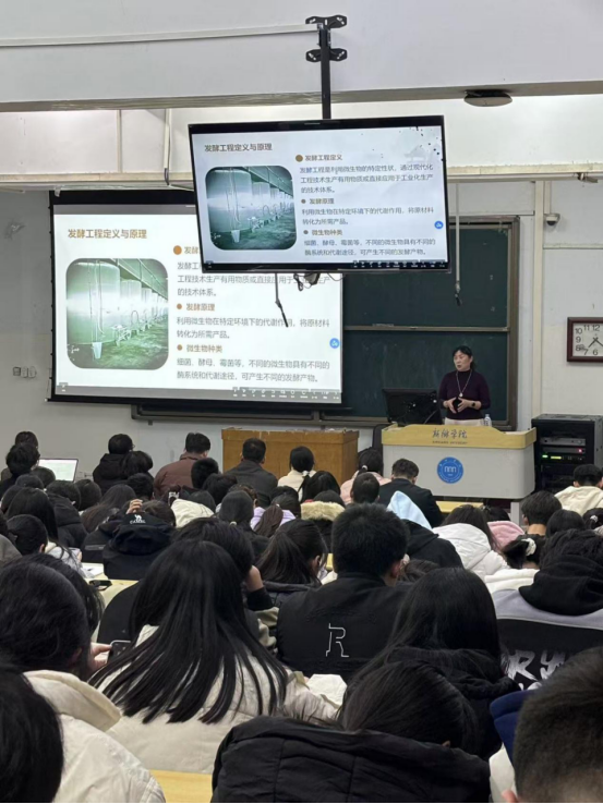本次“博士论坛”共12期,分别由不同学术背景的博士教师围绕各自课题研究进展,国家级、省部级项目申报内容,以及生物、食品重点研发领域进展等内容进行全方位、深层次的精彩介绍。院长张艳芳以“跨越千年发酵工程”为主题,结合自身在发酵工程领域多年的丰富经验与积累,带领师生追溯了发酵工程的起源与发展历程,并深入浅出地介绍了生物技术、食品科学与工程和酿酒工程三个专业在发酵工程领域的具体技术应用,以及三个专业未来的发展方向与热点。让在场的师生受益匪浅,不仅领略到了发酵工程跨越千年的独特魅力,更充分认识到发酵工程技术在人类文明发展进程中的重要地位。