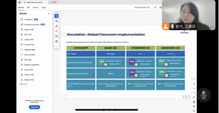 2024年11月24日上午,马来西亚彭亨大学现代语言中心江美芬老师开启第二次“全球高阶课堂”线上培训会议,yl23411集团官网人文学院十名学生共同参加。本次培训主要针对线上教学的各种疑难问题,对于课件要求、课堂内容设置及课堂时间安排等,江美芬做出了详细的解答。