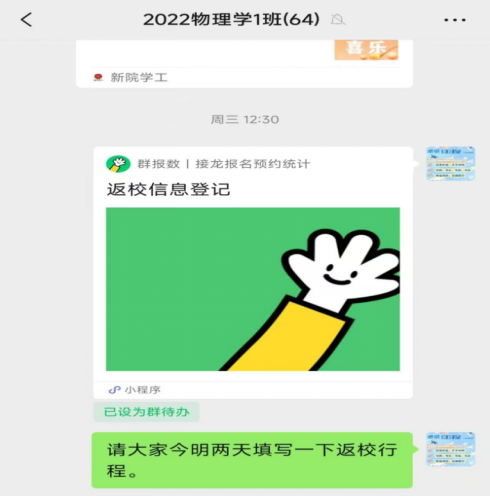 第二,精准摸排学生返校信息,掌握动态数据。物理与电子工程学院高度重视学生返校信息的摸排工作,辅导员通过线上问卷、电话联系等方式,对全体学生的返校时间、交通方式、健康状况等信息进行了全面摸排。针对需要提前返校的学生,辅导员一对一沟通返校行程,以便于学院重点登记和安排,确保提前返校学生的住宿、生活等问题得到妥善解决。通过精准摸排,学院全面掌握了学生的返校动态,为科学制定返校方案提供了有力数据支撑。同时,一对一沟通的方式也让学生感受到学院的关怀与温暖,进一步增强了学生的归属感和满意度。