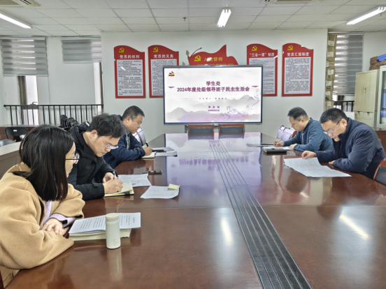 按照校党委《关于召开2024年度处级党员领导干部民主生活会的通知》要求,2月21日下午,学生处处级领导班子召开2024年度民主生活会。学生处领导班子全体成员参加会议,会议由学生处处长王坤主持。
