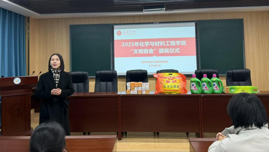 经过严格评选,最终评选出一等奖1个,二等奖2个,三等奖3个。3月3日下午,化学与材料工程学院成功举办了“文明宿舍”评选的颁奖仪式。化学与材料工程学院党委副书记李彦霓、团委副书记周慧以及辅导员与荣获文明宿舍称号的学生们参加本次颁奖仪式。