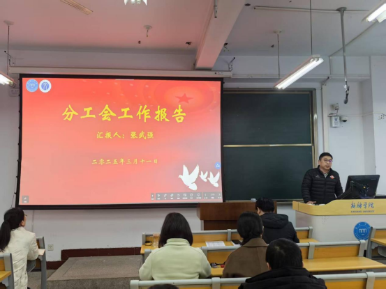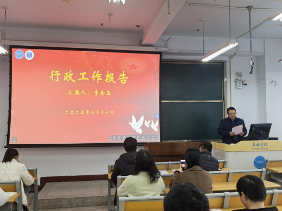 下午4点,会议在庄严的国歌声中拉开帷幕。张武强宣读了校工会对召开本次大会的批复。李金玉向大会作2024年度学院行政工作报告,从人才培养、学科专业建设、学生工作、教学科研、对外交流等方面,全面总结学院2024年度工作,查摆了存在的问题,展望了2025年工作规划,从优化教师队伍、提高教学科研水平、强化服务地方能力等方面提出突破方向。张武强向大会作2024年度学院分工会工作报告,汇报了学院分工会在“学习之家、民主之家、温暖之家、快乐之家、文化之家”五家建设情况、活动开展情况等方面以及工会经费使用情况,明确了今年分工会工作要点。