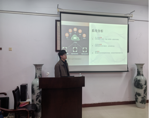 学院成立了由书记、院长为组长的评审委员会,采取“申报初筛+现场初评”双环节评审模式,确保赛事公平性与专业性。经过初筛,共有6份作品进入3月13日现场初评。各团队通过PPT讲解、数据分析、模型展示,向评审委员会介绍竞赛作品,展现出扎实的专业素养与创新思维。在评审过程中,评审组对展示作品的创新性、实用性、技术难度等方面进行了综合评估,并与参赛团队进行了深入的交流和讨论。经过初评,评审委员会一致通过推荐《稷械云枢—智慧农业机械可视化综合管控平台》《智能番茄种植大棚管理系统》等5个作品参加校级比赛。
