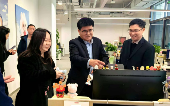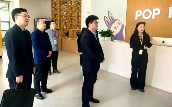 首先,在刘富鹏陪同下,宋伟一行实地参观了企业产品展厅、创意设计中心及员工办公区。刘富鹏详细介绍了企业发展历程、品牌文化内核及“潮流IP+创意设计”的运营模式,并强调公司近年来在文化衍生品开发、数字化营销等领域的技术突破。宋伟对企业的创新活力表示高度认可,指出“将课堂延伸至产业一线,是培养高素质应用型人才的关键路径”。