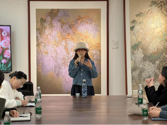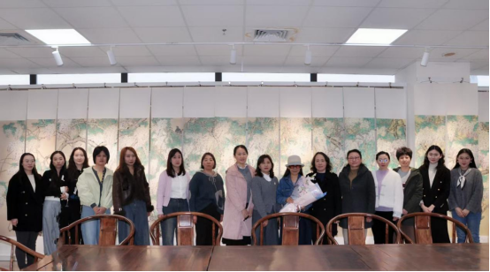 活动结束后,女职工们移步展厅参观赵保国老师的书画作品,其紫藤主题作品《华夏春晖》以苍劲根系与繁盛花瀑为意象,诠释女性“向下扎根、向上绽放”的生命力,更与本次活动主题相呼应,致敬如紫藤般柔韧向上的女性精神。