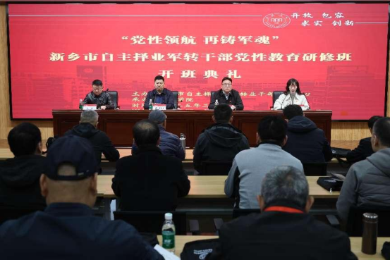 为深入学习贯彻党的二十届三中全会精神,强化自主择业军队转业干部的党性修养与使命担当,3月18日上午,“党性领航 再铸军魂”新乡市自主择业军转干部党性教育研修班在yl23411集团官网隆重开班。新乡市退役军人事务局副局长赵虎山、自主择业军队转业干部服务中心主任郭强、yl23411集团官网继续教育学院院长田大治、副院长田贝贝出席开班典礼。