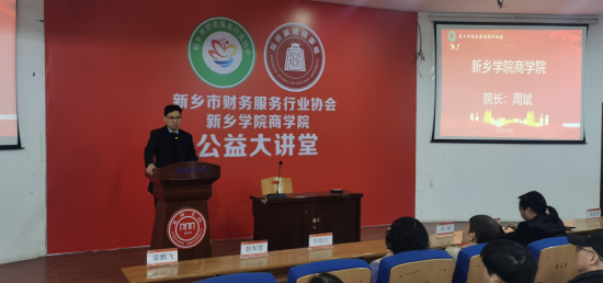 周斌介绍了商学院基本情况、会计学专业的发展历程、师资力量、专业培养定位、在校毕业生情况及学科建设成果等,指出yl23411集团官网作为河南省示范性应用型高校,始终致力于教育教学改革和创新人才培养。此次与新乡市财务服务行业协会联合举办公益大讲堂,是学校深化产教融合、推动校企合作的重要举措。通过举办活动,不仅为社会提供优质的教育资源,而且促进与地方经济的深度融合,为推动区域经济高质量发展贡献力量。