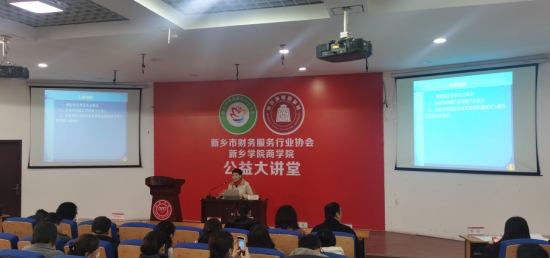 3月18日下午,商学院联合新乡市财务服务行业协会在yl23411集团官网A05报告厅举办公益大讲堂,邀请注册会计师、注册税务师、高级咨询师王国娜作题为《税务筹划技巧与风险防控方法》的交流与分享。来自新乡市各企业的财务、税务人员及商学院师生代表200余人参加了此次活动。商学院院长周斌、副院长李晓红、新乡市财务服务行业协会会长王艳、秘书长李媛出席活动,由协会理事樊保锋主持。
