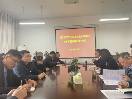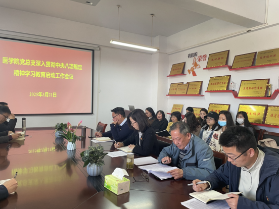 3月21日下午,医学院党总支在A14-305召开深入贯彻中央八项规定精神学习教育工作部署会。党总支书记职丽娟主持会议,全体师生党员参加会议。