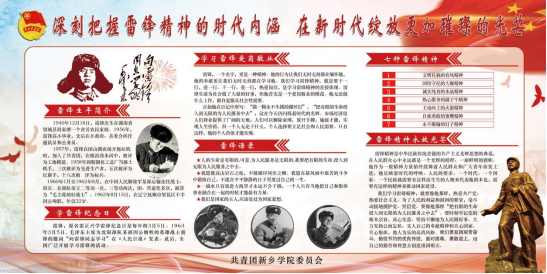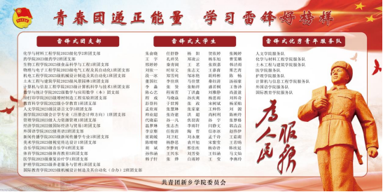 选树“新时代校园雷锋”典型:结合团课学习成效,评选“雷锋式团支部”“雷锋式大学生”,通过事迹报告会、宣传展板、微信推文等形式广泛宣传。