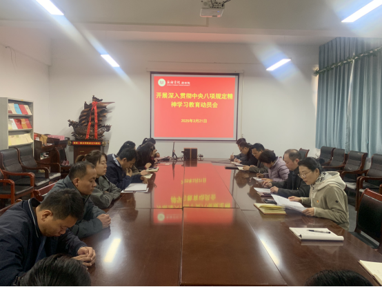 药学院党委高度重视深入贯彻中央八项规定精神学习教育,把开展学习教育作为重要的政治任务,精心组织,周密部署,扎实推进。3月21日上午,药学院党委召开了深入贯彻中央八项规定精神学习教育部署会,会上传达学习了习近平总书记关于开展深入贯彻中央八项规定精神学习教育的重要讲话精神,宣读下发了《药学院开展深入贯彻中央八项规定精神学习教育的工作方案》,并对学习教育相关工作进行安排部署。