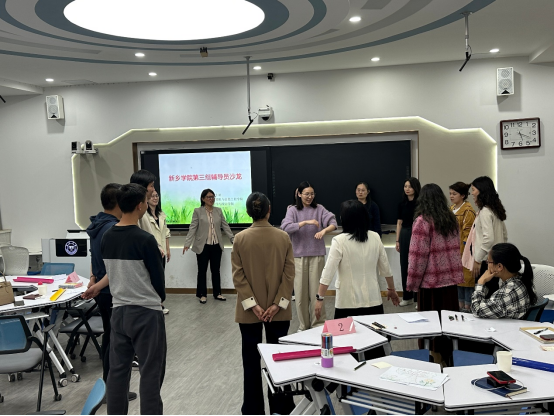 活动分三阶段开展。第一阶段通过破冰游戏、团队组建、团员互动、协作挑战等环节,打破人际关系壁垒,让来自三个学院的老师之间的距离感拉近了。此活动为各位老师在指导学生开展工作提供一些借鉴和参考。第二阶段聚焦心理危机干预,围绕危机定义、干预对象识别及应对策略展开研讨,利用SMART目标设立原则和焦点技术等,结合家庭、学校与求助者三方协作对求助者进行干预,以此达到帮助求助者的目的。第三阶段特邀嘉宾郭晓薇通过心理辅导案例引导与会者通过互动研讨和经验分享,探讨工作中遇到的问题及解决方案。