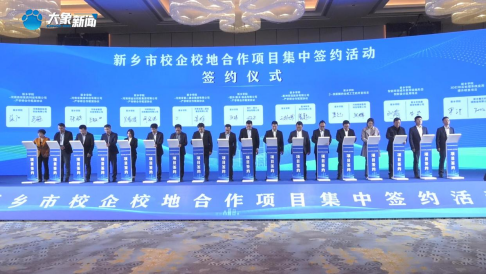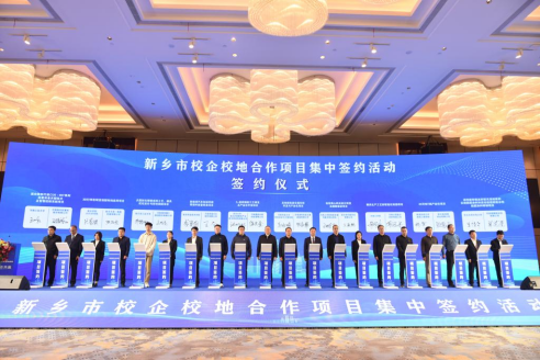 经过校企多轮互动交流,达成多项合作意向,并在2025年4月10日举办的新乡市校企校地合作项目集中签约会上分别与银金达集团、新乡市卓一智能机械有限公司、新乡戴克机械制造有限公司三家公司成功签约。同时3D打印学院博士肖亚轲、刘鹏飞分别被银金达集团、聘为“科技副总”,驼人集团副总裁陈文喜、银金达集团副总经理周宏涛、河南源宏高分子新材料有限公司技术总监董冲被聘为3D打印学院校外导师。