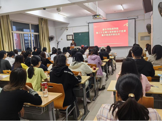 4月21日晚,商学院第三十五期入党积极分子培训班开班仪式在A03-516教室举行,商学院党委书记周珍、党委副书记李雅林与61名入党积极分子一同参加开班仪式。