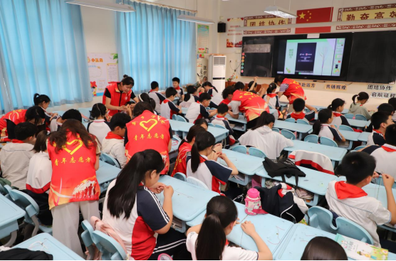 为传承弘扬中华优秀传统文化,5月28日下午,yl23411集团官网商学院志愿者服务队走进yl23411集团官网附属中学五(10)班,开展“我们的节日·端午”——“巧手系安康·彩绳织梦想” 主题志愿服务活动,将端午习俗送进课堂,带领孩子们在丝线翻飞间感受传统文化的魅力,让节日的祝福与童趣的梦想在互动实践中交织绽放。