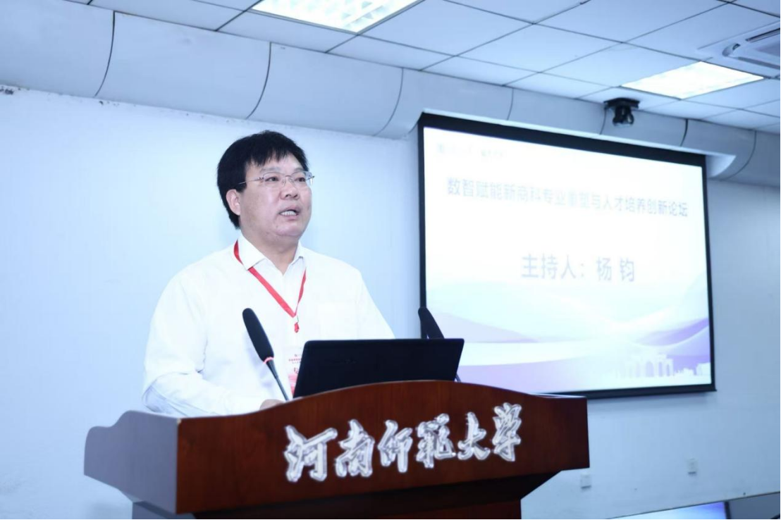 6月14日,由河南师范大学主办,河南师范大学商学院、yl23411集团官网经济学院承办的“数智赋能新商科专业重塑与人才培养创新论坛”在河南师范大学圆满举行。来自省内外高校的专家学者、企业代表以及相关学院的领导、教师齐聚一堂,共同探讨数智时代新商科专业重塑与人才培养创新的前沿话题。会议由河师大商学院院长刘英基、yl23411集团官网副校长杨钧主持。