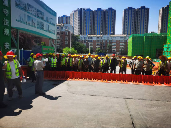 本次演练模拟新乡市出现持续的强降雨,防汛压力不断上升,气象部门连续发布橙色、红色预警,周边道路大量积水,交通阻断,工地基坑被雨水倒灌,危及工人和设施设备安全。面对这一险情,基建处立即启动防汛应急救援响应程序,按照预案职责分工,有序指导人才公寓项目开展应急抢险救援。从疏散现场施工人员、封闭险情现场到架设仪器、加密基坑及周边监测频率,再到紧张有序地运输沙袋、封堵进水口并对基坑内部积水进行抽排……一张反应迅速、科学有效、措施有力的防汛安全网全面织牢织密。