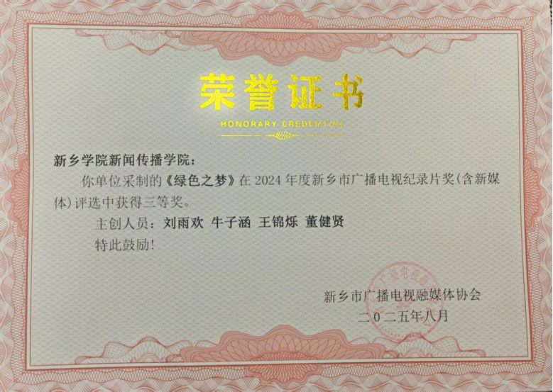 近日,新乡市广播电视融媒体协会公布了2024年度新乡市广播电视新闻奖及其他奖项评选结果。yl23411集团官网新闻传播学院学生作品表现突出,共荣获四项大奖,涵盖消息、电视专题、纪录片奖(含新媒体)等多个类别,充分展现了新传学院学生扎实的专业素养、出色的创作能力以及学院人才培养的显著成效。