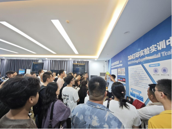 田文强从3D打印学院的办学历史、办学现状和办学成果等方面进行介绍,引导大家认识3D打印学院。之后,田文强引导家长和同学们参观了学院3D数据中心、树脂3D打印室、尼龙3D打印室、金属3D打印室、3D逆向工作室、3D内雕室和3D工作坊等10多个实验室,向家长和同学们介绍各种3D打印技术的基本原理、应用场景和学科优势,让参观者深切感受到了3D打印这种前沿学科作为新质生产力的强大生命力和辉煌前景。这种创新的"场景化教育"模式,有效消除了家长对新兴专业的认知壁垒,为构建深度家校合作奠定了坚实基础。
