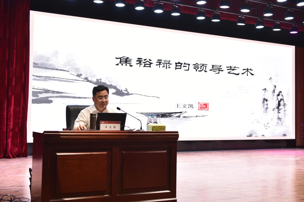 会上,王文凯以“焦裕禄的领导艺术”为题作专题报告。他通过详实的史料和生动的案例,系统阐述了焦裕禄在科学调研、班子建设、群众动员、制度建设及语言艺术等方面的领导智慧。报告指出,焦裕禄精神集中体现了一名优秀领导干部的政治品格、为民情怀和实干作风,其“亲民爱民、艰苦奋斗、科学求实、迎难而上、无私奉献”的精神内核,对新时代干部队伍建设具有重要启示意义。王文凯强调,广大干部要传承弘扬焦裕禄精神,牢固树立“功成不必在我、功成必定有我”的政绩观,在各自岗位上担当作为。