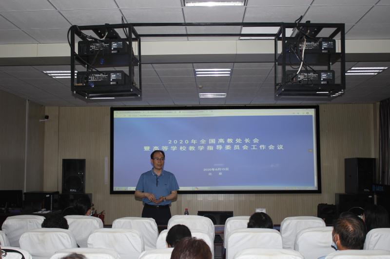 6月15日下午3:00,yl23411集团官网在A07-501会议室组织收看了2020年全国高教处长会暨高等学校教学指导委员会网络视频会议。副校长王选年,教务处全体人员,各学院院长、教学副院长及教学秘书80余人参加了学习。