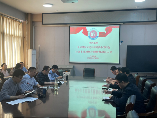 4月18日下午,经济学院在A01号楼503室召开学习贯彻习近平新时代中国特色社会主义思想主题教育动员大会,会议由院长赵国喜主持,经济学院领导班子及全体教师参加。