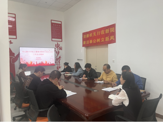 会议传达了主题教育领导小组办公室主任、校党委副书记杨士斌对开展好主题教育的要求。要提高政治站位、压实主体责任,注重统筹兼顾,务求实效;要加强宣传报道,营造深厚氛围,要强化督促指导,确保各项任务落实。