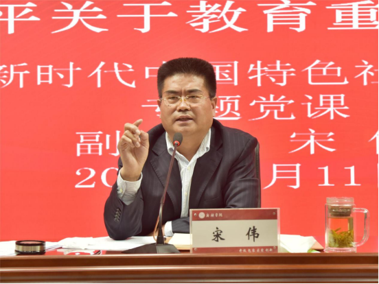为深入开展学习贯彻习近平新时代中国特色社会主义思想主题教育,全面贯彻落实主题教育的总要求和总目标,根据学校主题教育领导班子成员分别讲党课的安排,5月11日下午,yl23411集团官网党委委员、副校长宋伟在一楼东报告厅讲授题为《学思想强党性重实践建新功——学习习近平总书记关于教育重要论述的几点认识》的主题教育专题党课,宋伟分管部门和联系单位科级以上干部、党员、教职工代表百余人参加了学习。