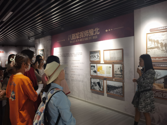 随后,同学们来到龙卧岩,参观河南太行八路军抗战纪念馆。龙卧岩所在的太行山区是八路军太行抗日根据地的重要组成部分,是刘伯承、邓小平、朱瑞、陈赓、皮定均等老一辈无产阶级革命家曾经战斗过的地方。通过讲解,同学们了解到八路军在河南太行山区的抗战历史,以及在卫辉这片红色土地上可歌可泣的英雄事迹和动人故事。丰富的历史文物、翔实的文史资料直观地展现了抗战历史和党的发展历程,激励同学们铭记历史、缅怀先烈,铭记党的丰功伟绩,传承红色精神。