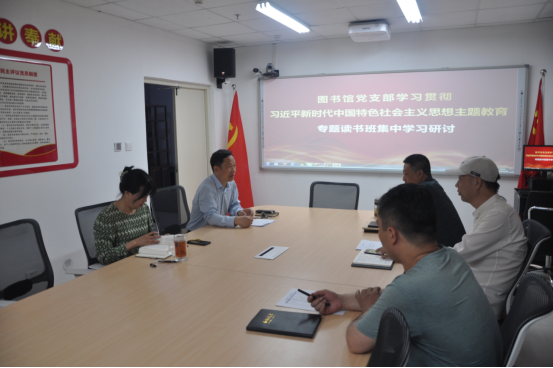 5月16日下午,图书馆教职工政治理论学习暨学习贯彻习近平新时代中国特色社会主义思想主题教育专题学习研讨会先后在图书馆601会议室和党建活动室举行。会议由馆长刘铁男主持。