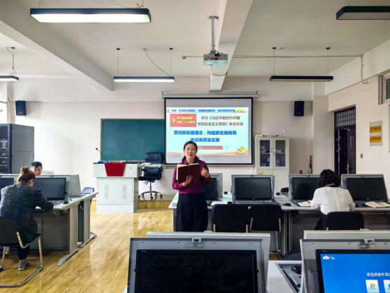 为贯彻落实学校党委关于学习贯彻习近平新时代中国特色社会主义思想主题教育的重要部署,5月30日下午,商学院党委书记周珍在A03-614讲授了题为“贯彻新发展理念,构建新发展格局 推动高质量发展”的主题教育专题党课。商学院全体党员、教师参加学习。