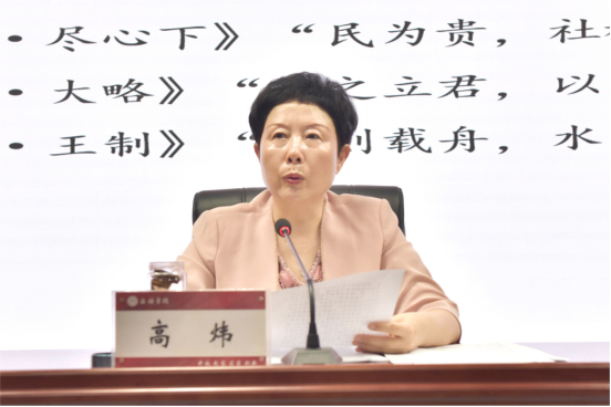 高炜强调广大党员干部坚持将人民利益置于最高地位,充分发扬全心全意为人民服务的精神,坚定理想信念,志存高远,脚踏实地,走好新时代赶考路,当好新时代答卷人,在开创学校事业发展新局面的征途上不断努力,在实现中国式现代化生动实践中踔厉奋发,在为人民利益的不懈奋斗中书写人生华章。