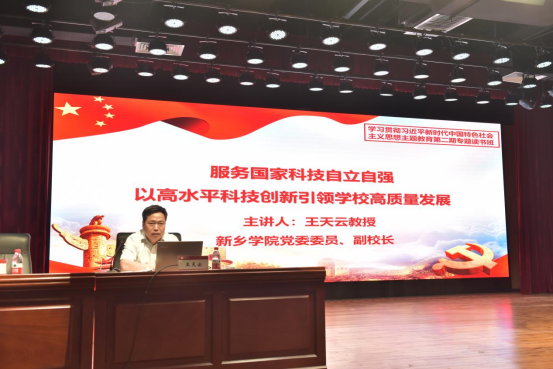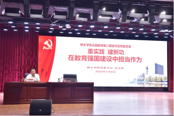 7月4日至6日,党委书记孙功奇首先在《重实践、建新功,在教育强国建设中担当作为》讲座中,从中国式现代化理论体系高度,探讨了建设教育强国的重要性,围绕“重实践、建新功”,结合学校工作实际,提出了更好发挥高校职能,在教育强国建设中彰显使命担当的具体工作要求。省社科联党组书记、主席李庚香以《深入学习中国式现代化理论体系 以新型工业化支撑中国式现代化河南实践》为题,深入阐释了中国式现代化的内涵以及推动中国式现代化的途径。副校长宋伟、王天云分别以《深入学习习近平总书记关于教育重要论述 加快应用型本科高校高质量发展的几点认识》《服务国家科技自立自强 以高水平科技创新引领学校高质量发展》为题作辅导报告,将习近平新时代中国特色社会主义思想与学校的应用型本科高校建设和科技创新相结合,提出了加快应用型本科高校高质量发展和以高水平科技创新引领学校高质量发展的建议和举措。4场讲座极具针对性和指导性,丰富了大家的政治理论和知识储备,也为将主题教育成果转化为工作实绩指明了方向。