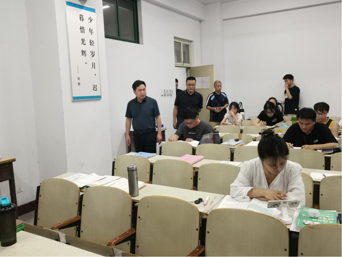 听完相关情况汇报后,王天云来到A-11号楼逐一查看了每间考研教室的情况,并对同学们表示慰问。