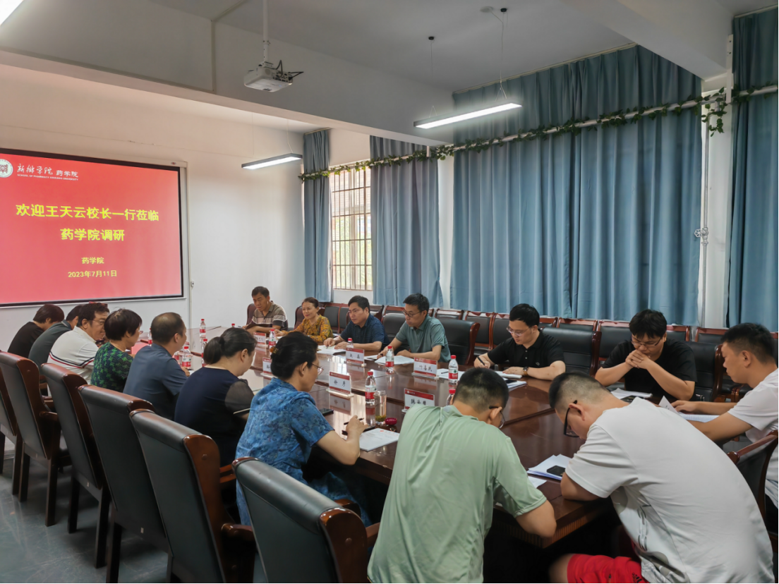 会上,王天云听取了药学院党委书记骆云飞关于学院党建、学生教育管理工作和主题教育开展情况的汇报,详细听取了药学院院长徐绍红对于学院近期在教学科研、专业建设、人才培养、招生就业等方面取得的成效和下一步工作思路举措的介绍,倾听了与会教师对产学研融合、大型仪器设备使用、教育教学管理等方面的意见和建议,并一一进行回应。